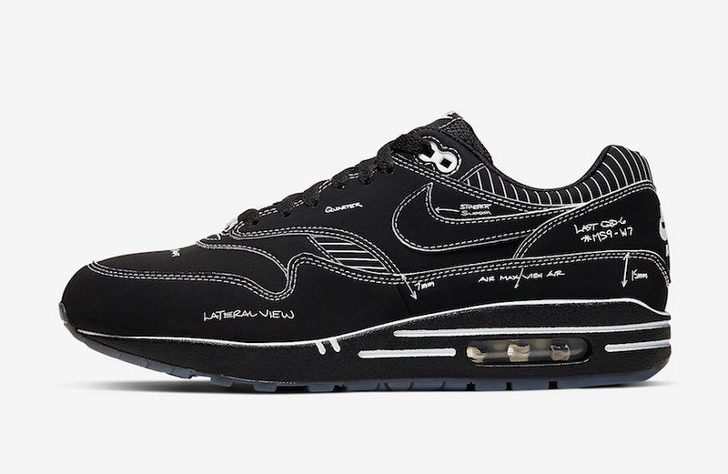 have been looking to pay homage to the OG sketches done by Tinker Hatfield via a specialised pack titled 'Sketch to Shelf'. Three separate Air Max 1 colourways will be dropping, all featuring sketch-like details, inspired by Hatfield's original drawings of the now-iconic AM1. With concrete drop details for the other two models already announced, we were buzzing when we heard that the 'Black Schematic' will be receiving a release on the same day.