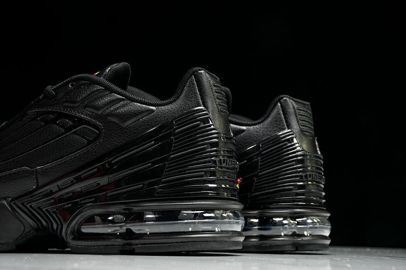 Seen here in a stealthy-looking triple black rendition, the Air Max Plus 3 displays a streamlined look that’ll be sure to act as the perfect finishing touch for countless different outfits. Crafted from a blend of synthetics, canvas and mesh, the pair showcase a panelled design and a black mini-Swoosh logo at the front, alongside range specific branding at the tongue and heel.